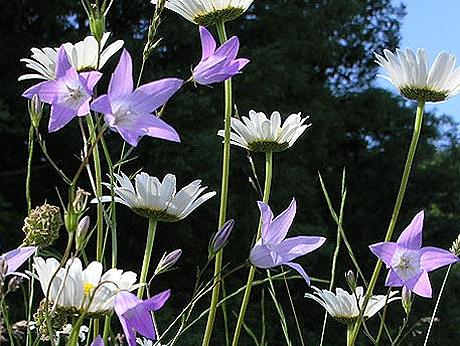 Wiesenglockenblumen sorgen für einen blauen Kontrast. Aus vielen Wiesen ist diese recht empfindliche Art inzwischen verschwunden.