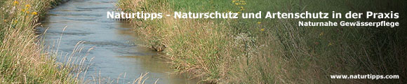| • | Gewässer brauchen Raum, damit aus sterilen Hochwasserabflussrinnen wieder Lebensräume werden. Bei verrohrten Gräben, zwischen Dämme gezwängten Kanälen und gepflasterten Bächen genügt es nicht, einfach die Gewässerpflege umzustellen! => mehr zum Thema Renaturierung von Fließgewässern |