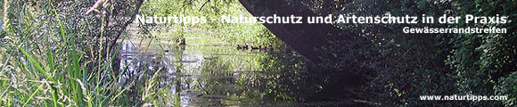 | • | reduzieren den Aufwand für den Gewässerunterhalt. Wenn ausreichend breite Randstreifen erhalten sind, sind Pflegeeingriffe häufig nur zur Lenkung der Biotopentwicklung notwendig. => mehr zum Thema Naturnahe Gewässerpflege |