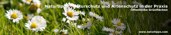 | • | Artenarme Zierrasen durch extensive Gebrauchsrasen ersetzen. Bei Rasenflächen, die keine extremen Belastungen aushalten müssen, reichen vier bis acht Schnitte pro Jahr völlig aus. Solche Flächen sind artenreicher als wöchentlich gemähte Flächen. |