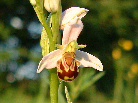 Die prachtvollen Blüten der seltenen Bienenragwurz (Ophrys apifera) sind auf ganz bestimmte Wildbienen als Bestäuber angepasst. Wenn die natürlichen Bestäuber nördlich der Alpen fehlen, pflanzt sich diese Art durch Selbstbestäubung fort. |