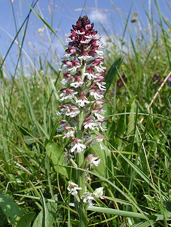 Das Brandknabenkraut (Orchis ustulata) ist vor allem in mageren, meist trockenwarmen Wiesen zu finden. Es kommt aber auch in lichten Kiefernwäldern und alpinen Weideflächen bis in eine Meereshöhe von 2500 m vor. Die Art benötigt nährstoffarme Standortverhältnisse und reagiert sehr empfindlich auf Düngung. |