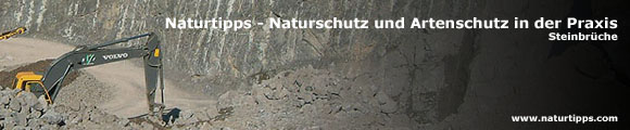 | • | Ein an die jeweiligen Gegebenheiten angepasstes, zeitlich und räumlich gestaffeltes Pflegekonzept erstellen. Vorkommen vieler, oft gefährdeter Pionierarten zählen zu den Besonderheiten von Steinbrüchen. Sollen ihre Lebensräume langfristig gesichert werden, sind nach der Stilllegung lokale Pflegeeingriffe (zB das Entfernen aufkommender Gehölze oder die Entkrautung von Kleingewässern) nötig. => mehr zum Thema Naturnahe Pflegemaßnahmen |