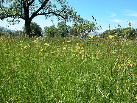 Die Wiesen unter den Obstbäumen werden oft extensiver genutzt als auf baumfreien Flächen, was die Artenvielfalt in Obstwiesen zusätzlich fördert.