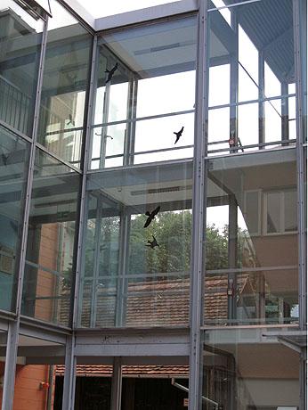 Viele moderne Gebäude sind durch große Fensterfronten, Glasfassaden und gläserne Verbindungsgänge charakterisiert. Hier sind die Architekten gefragt, vogelfreundliche und trotzdem attraktive Lösungen zu finden.